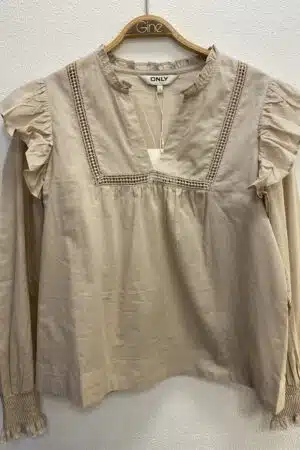 ONLIDRIS LS FRILL TAPE TOP NOO CHATEAU GRAY