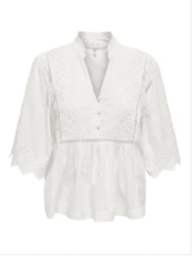 JDYMAYA 2/4 EMBROIDERY TOP er et oplagt valg til en feminin garderobe, hvor komfort og stil går hånd i hånd. Den kan bruges alene på varme dage eller styles med en cardigan eller blazer for et mere lag-på-lag look.