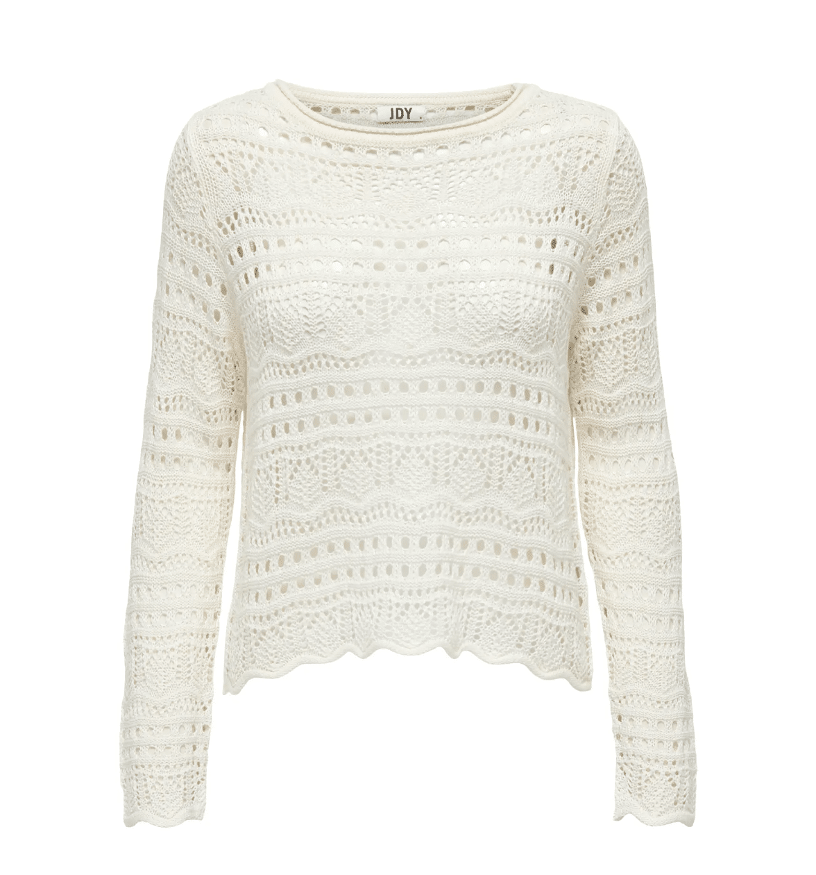 Beskrivelse:JDYSUN LAY L/S Boatneck Pullover fra JDY er en feminin og stilren striktrøje med et tidløst design. Trøjen har en elegant bådudskæring (boatneck) og lange ærmer, som giver et klassisk og flatterende udtryk.Den er fremstillet i en blød strikket kvalitet i 100 % akryl, som føles let og behagelig at have på. Det strukturstrikkede mønster og dekorative bølgede kanter giver trøjen et feminint og moderne look, der passer perfekt til både hverdag og mere afslappede anledninger.