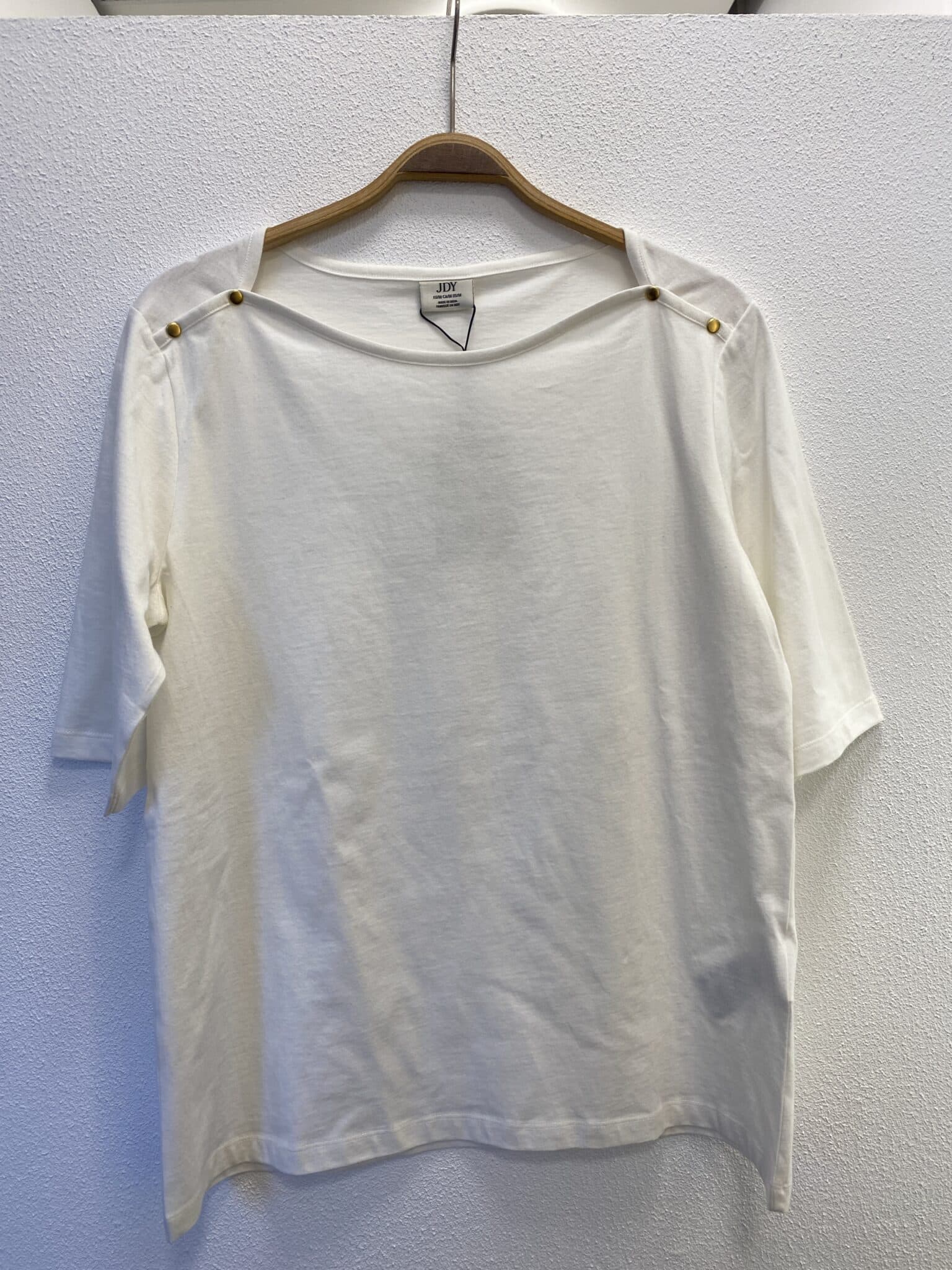 Beskrivelse: Denne JDY-top er lavet i blødt, åndbart materiale, der føles behageligt hele dagen og giver en afslappet, casual pasform. Toppen har korte ærmer og en klassisk rund hals, som giver et enkelt og tidløst look, der er nemt at style med jeans, nederdel eller shorts til både hverdag og weekend. Det rene design gør den til et alsidigt basis-item i garderoben, perfekt til at mixe med resten af dine favoritter fra JDY.