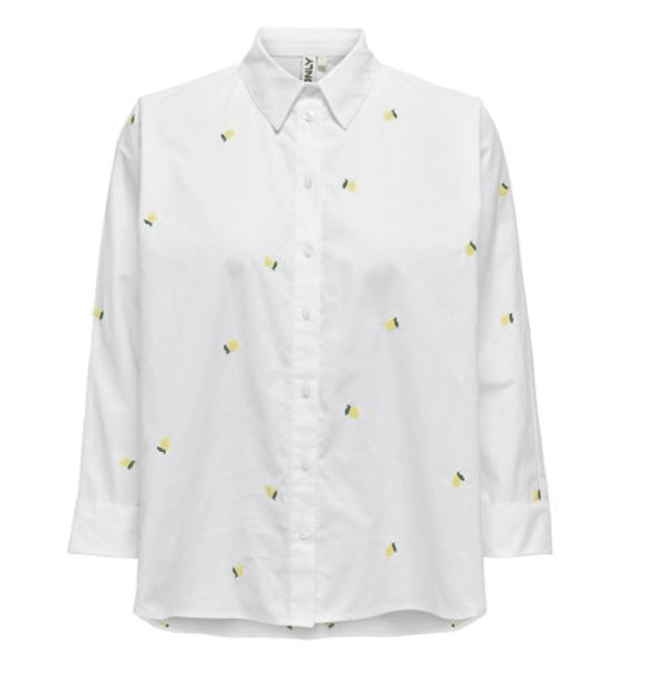 ONLNEW LINA GRACE LS EMB SHIRT BRIGHT WHITE/ LEMON