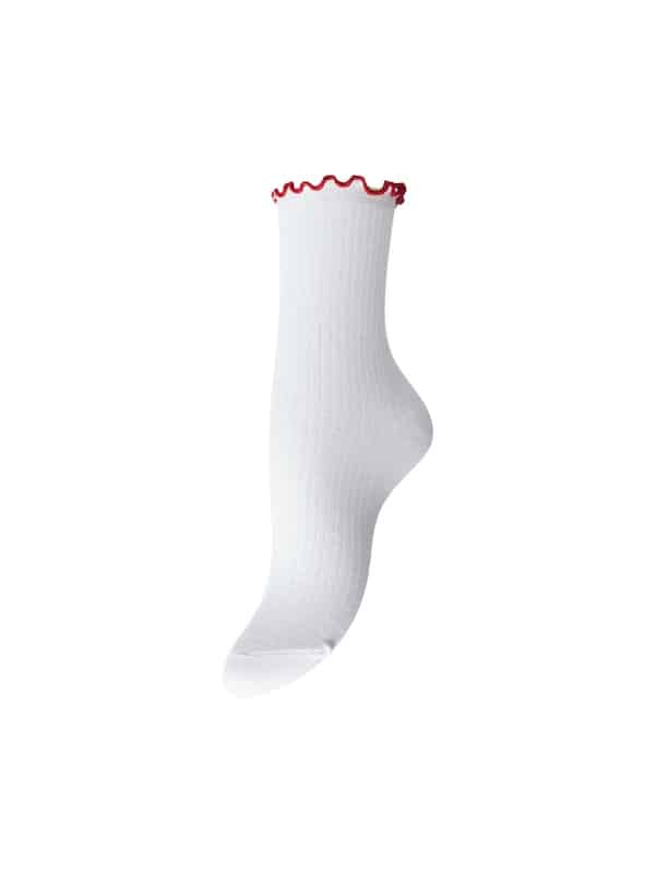 Beskrivelse: Disse sokker fra Pieces er designet som et stilfuldt og dekorativt tilbehør til dit outfit og kommer med en kontrastflæse der giver et feminint og trendy udtryk. Sokkene er fremstillet i en behagelig bomuldsblanding der sikrer god komfort og pasform gennem dagen. Det klassiske design gør dem nemme at kombinere med sneakers, loafers eller andre sko alt efter dit look. Materialet består hovedsageligt af bomuld med en smule polyester og elastan for fleksibilitet og holdbarhed. Vask ved lav temperatur for at bevare kvalitet og elasticitet.