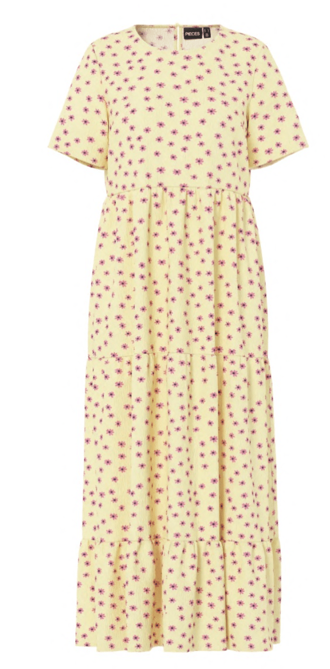 PCEVIE SS ANKLE DRESS NOOS er en feminin og alsidig kjole fra Pieces, designet til både hverdag og mere afslappede anledninger.